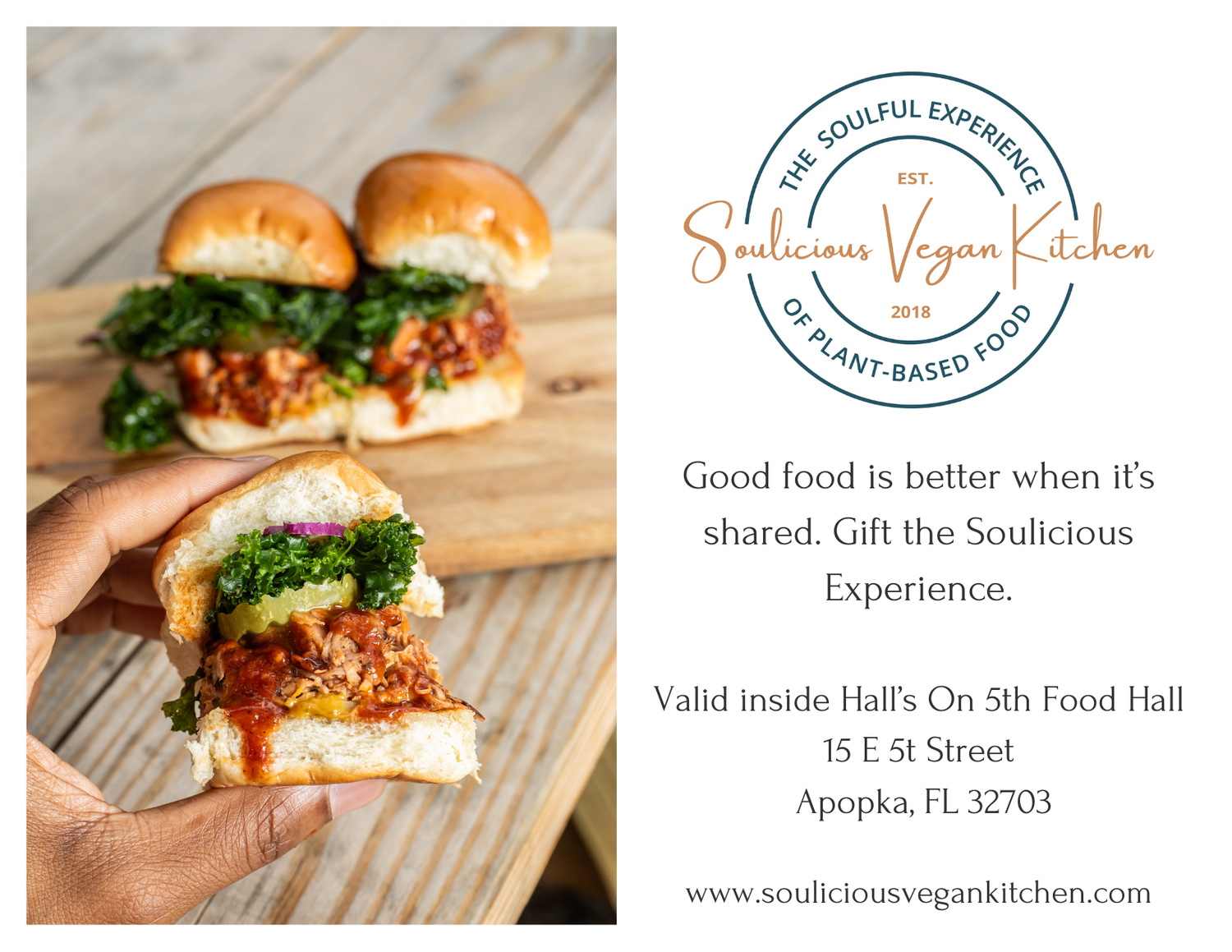 Our digital gift cards make it easy to share the Soulicious Experience in amounts of $25, $50, $100 or $200.